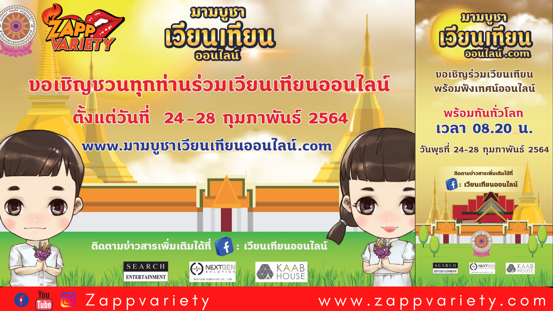 ปีนี้เป็นอีกปีที่ กรมศาสนา ชวนคนไทยมา เวียนเทียนออนไลน์ ตามมาตรการ new normal ในยุคโควิด และยังสามารถรับบุญได้ที่บ้าน ด้วยการชมพิธีทางศาสนา.
